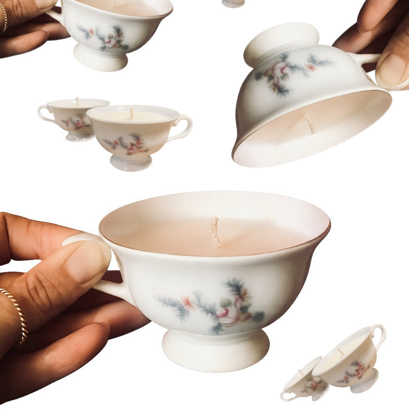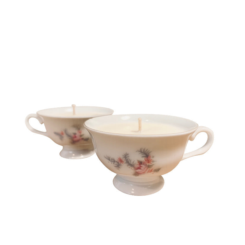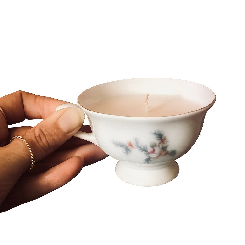 Ročno vlita svečka v keramični skodelici. Na voljo sta dve, navedena cena velja za eno.