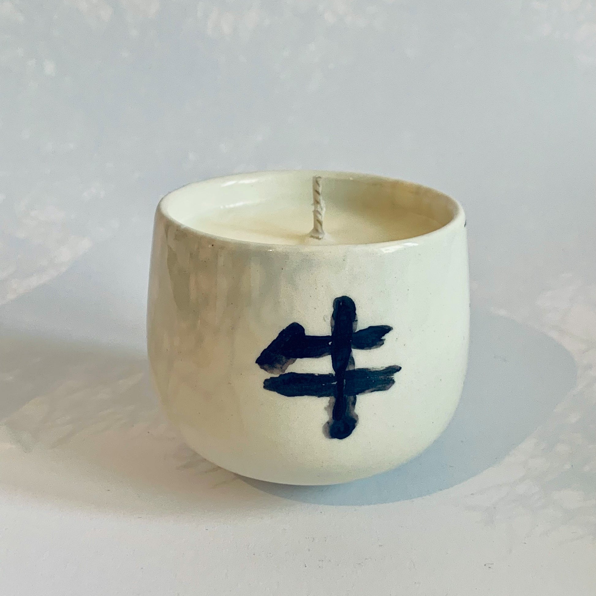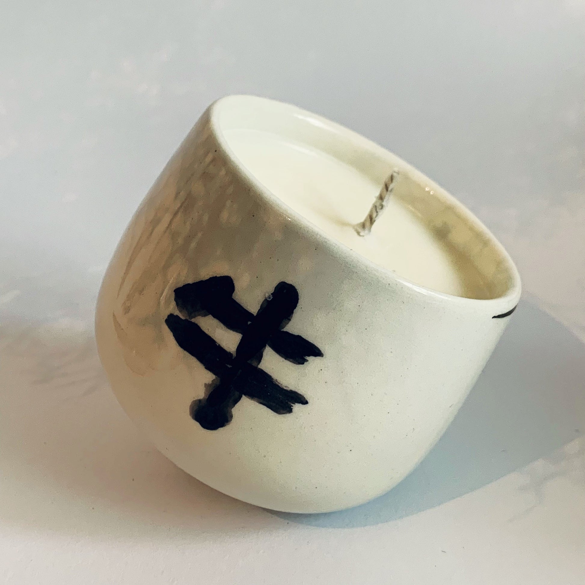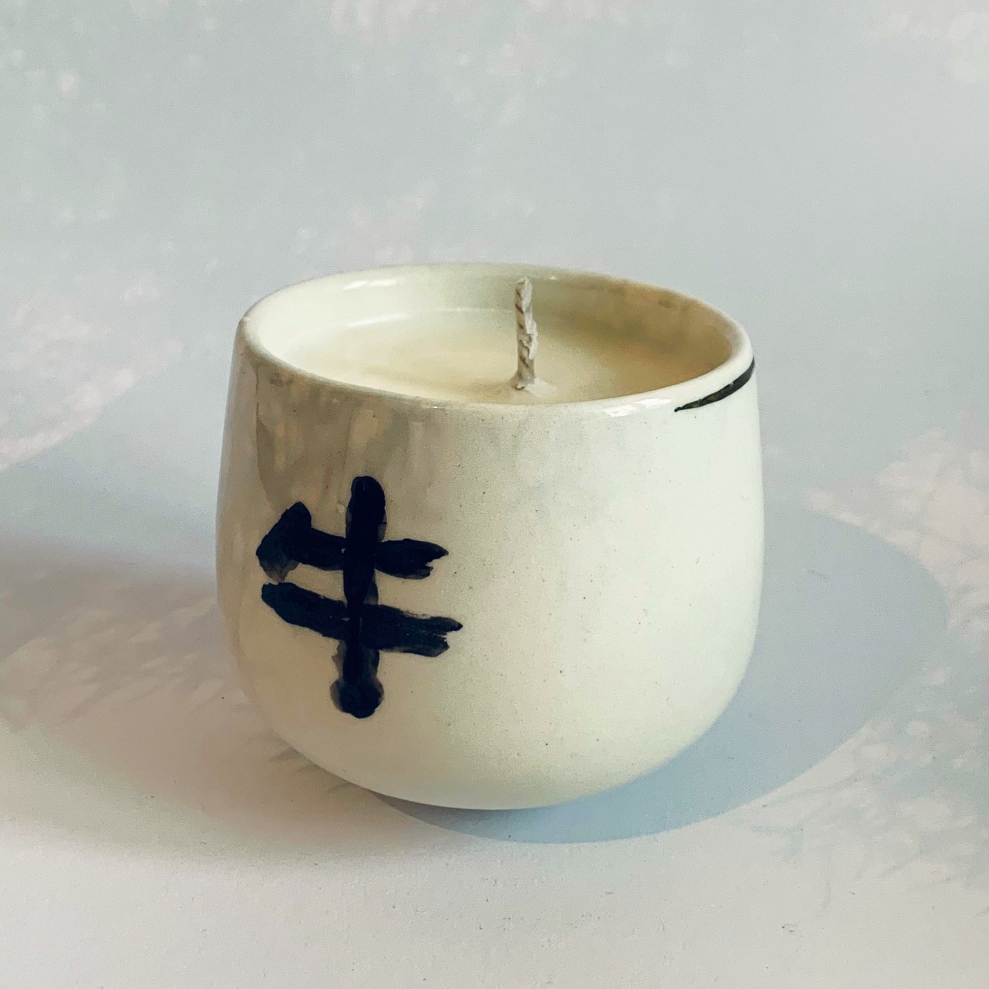 Ročno vlita svečka v keramični posodici. Na voljo samo ena.